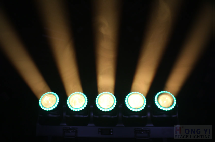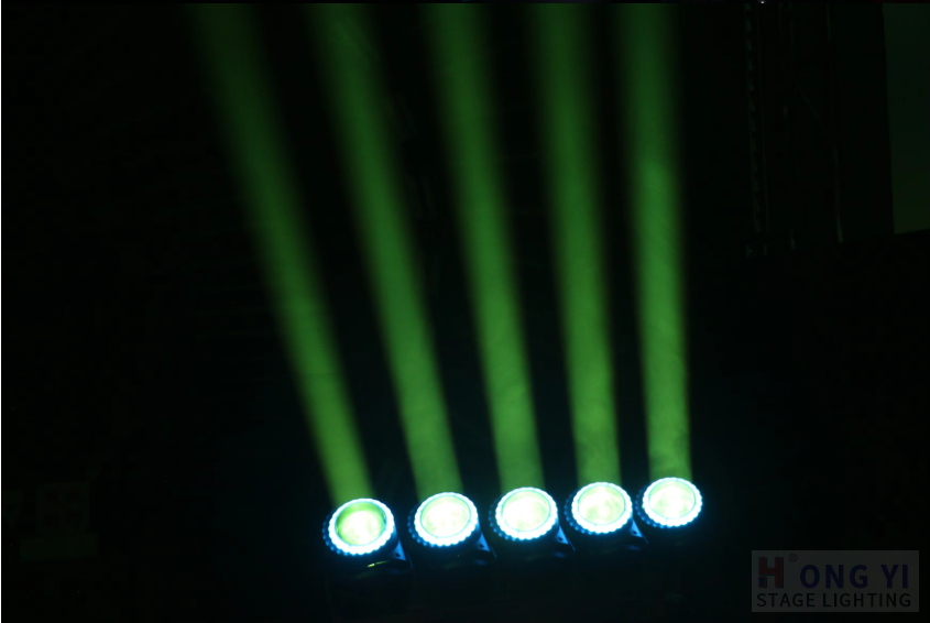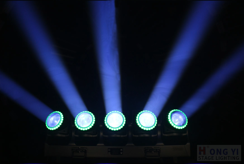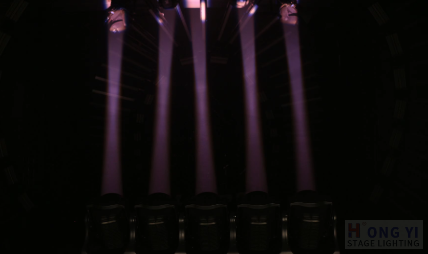 Features: Single moving beam, color wash, beam